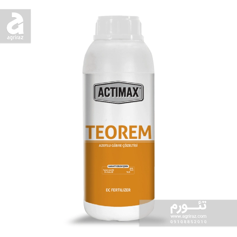کود آکتیماکس تئورم یک لیتری ترکیه ، نیتروژن مایع به صورت ترکیبی مناسب برای جذب سریع در گیاهان که باعث افزایش سبزینگی و درنتیجه فتوسنتز بیشتر و تولید هیدروکربن و افزایش عملکرد گیاهان می شود. همچنین سبب کاهش اثرات ناشی از استرس های محیطی و افزایش فتوسنتز در شرایط استرس دمایی می گیرد.