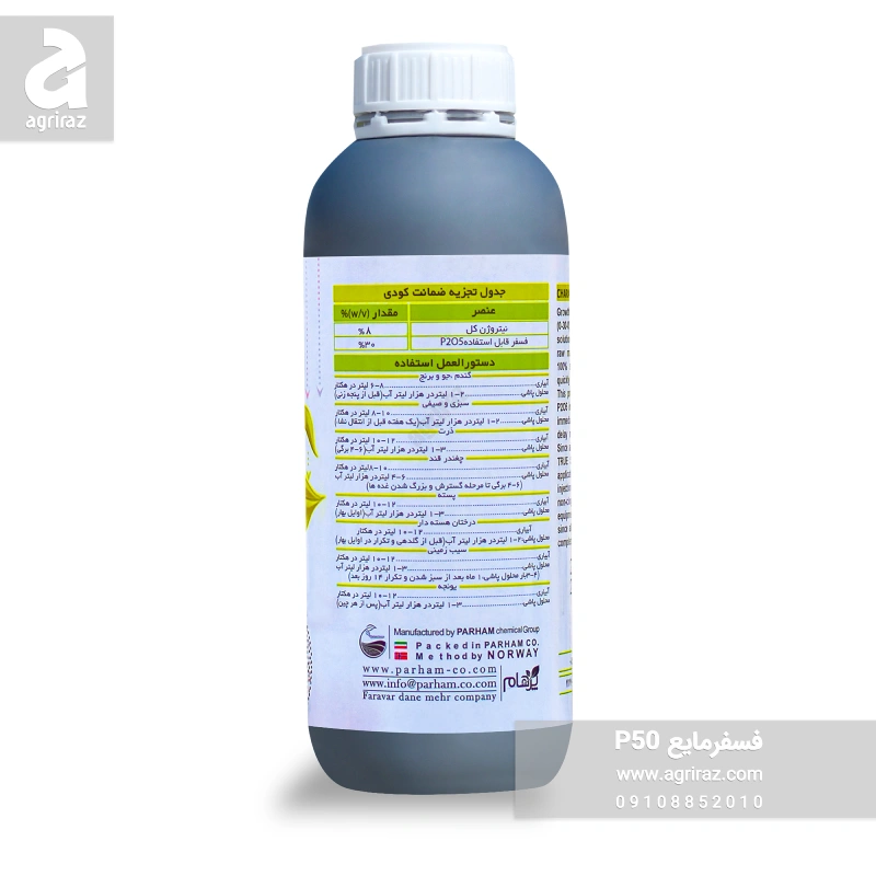 کود سیلومکس فسفرمایع P50 پرهام ایرانی ، با درصد بالایی فسفر و دز مصرف بسیار کم، کمک بسزایی در افزایش تکثیر سلولی در نوک ساقه و برگ خواهد داشت. این محصول دارای PH پایینی است که تزریق آن در سیستم های آبیاری موجب افزایش جذب عناصر می گردد.