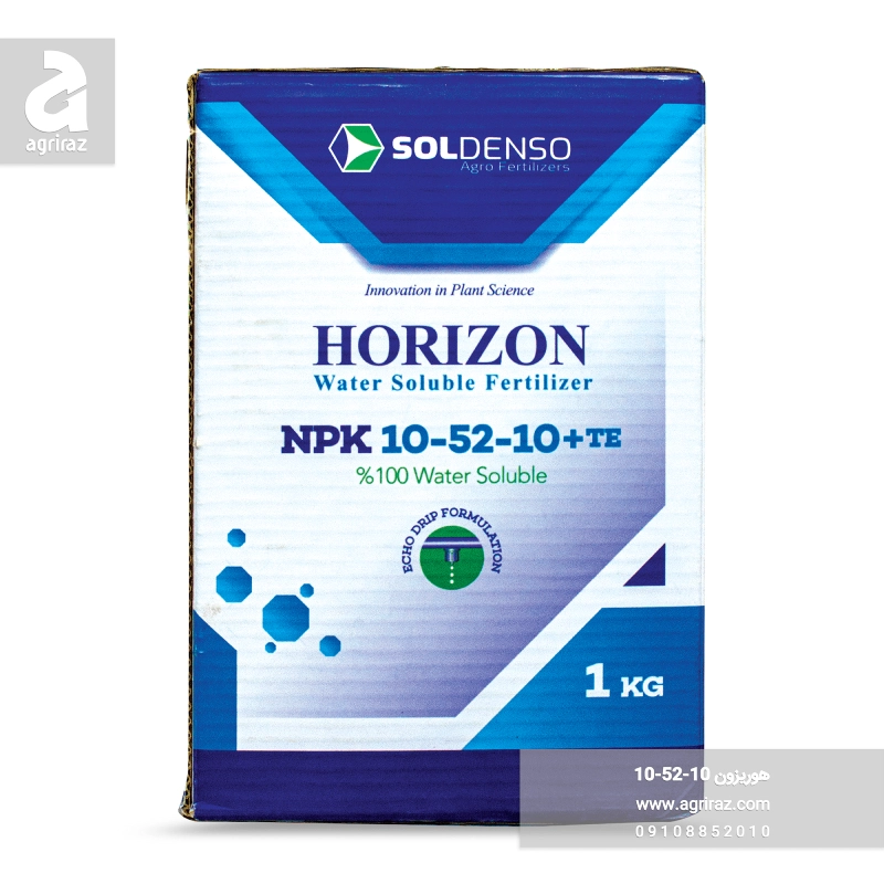 کود کامل هوریزون 10-52-10، حاوی مقدار بالای عنصر فسفر است که کاملا محلول در آب بوده و فاقد هرگونه عامل شوری در خاک می باشد. بنابراین جهت استفاده در تمامی گلخانه ها، باغات و زراعت های ایران مناسب می باشد.